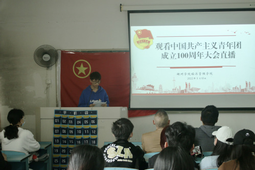 2022年5月10日上午,我院在中校区12幢503教室,认真组织师生集中观看庆祝中国共产主义青年团成立100周年大会直播,我院党委副书记宁培龙出席会议,团学组织学生干部、学生党员代表、入党积极分子代表等50余人参加了会议。会议由团委学生负责人郭鸿鹏主持。