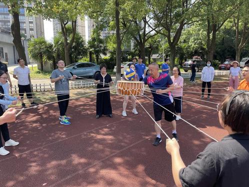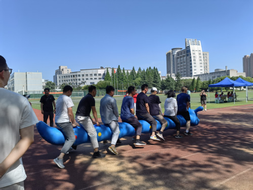 68下午,由中国教育工会我院委员会举办的我院首届教职工健身运动会西校区光彩体育场隆重举行,共5支分工会代表队参加本次运动会我院党委副书记宁培龙、副院长张丽担任领队,我院分工会主席陈嘉尧担任教练,我院20余名教职工参加了5个集体项目(同心鼓、8字跳绳、大脚板、旱地划船、流水作业)的比赛。