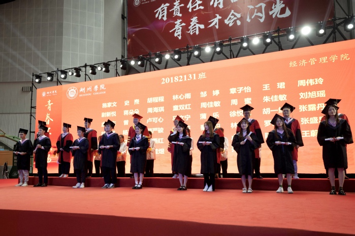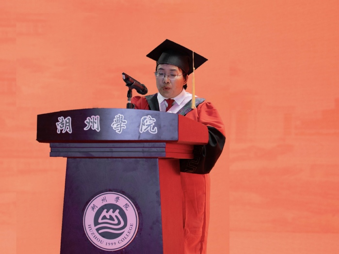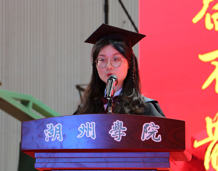接着,优秀毕业生代表、20182131班尉新悦上台发言。她深情回顾了四年在湖院的点点滴滴和同学们结下的深厚情谊,并代表全体毕业生,表达了对老师、对母校的感激之情和真诚祝福。