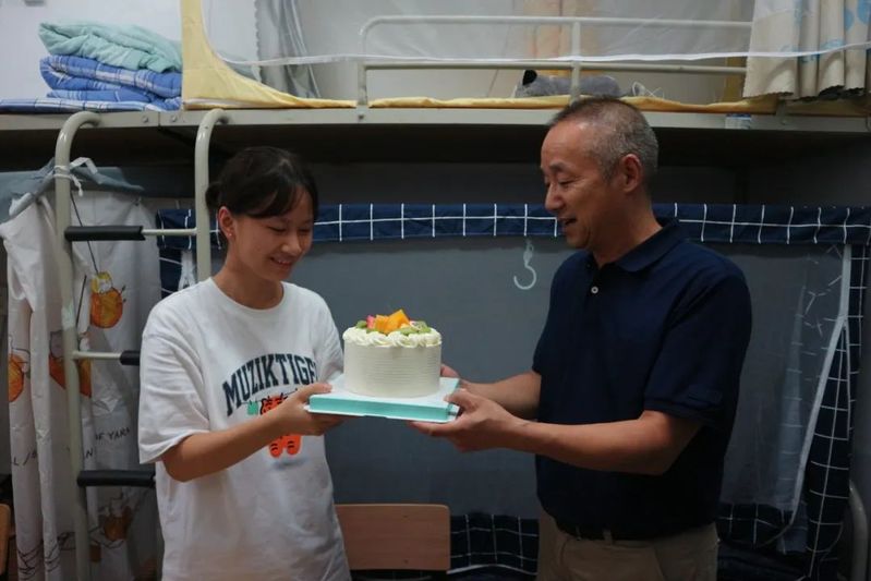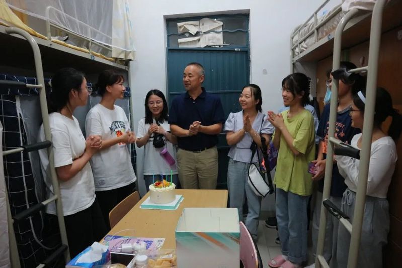 走访期间恰逢有一名新生过生日,学院提前准备了惊喜,学院党委副书记宁培龙和辅导员为经管小萌新一起唱生日歌,并送上生日祝福,现场洋溢着36365线路检测中心大家庭的温暖和感动。