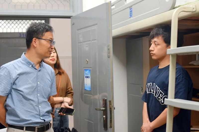 结束了美好忙碌的一天,萌新们迎来了大学的第一个夜晚。36365线路检测中心党委副书记宁培龙、副院长郭鹏飞和一众辅导员老师前往新生寝室看望,亲切地询问同学们所学专业、报到情况、并向同学们介绍了学校的总体情况、同学所在专业的行业地位和良好的就业前景,希望同学们把握好自己的学习和生活,在学校度过快乐的求学时光,将来都能学有所成。同学们纷纷表示,将会尽快熟悉所学专业,确立目标,以焕然一新的面貌迎接大学生活。