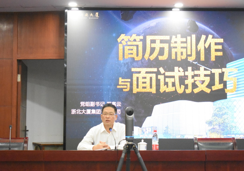 为更好地为毕业生就业服务,帮助毕业生提高求职本领,9月14日下午,由我院主办的“经风雨见彩虹系列”之简历制作及面试技巧讲座在明知楼203会议室开展。此次讲座邀请到浙北大厦集团党委副书记、副总裁奚高云及管培生带训讲师朱东作为主讲嘉宾。我院党委副书记宁培龙、学工办副主任陈燕、就业辅导员李俊,以及2019级学生代表80多人参加。