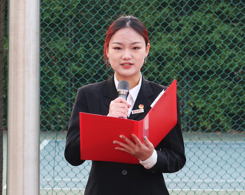 紧接着,宁培龙进行国旗下讲话。他指出,作为新时代大学生,我们要把为人民服务融入到学习工作中,做一颗永不生锈的“螺丝钉”,以钉子的“挤”劲和“钻”劲努力学习专业知识,增强为民服务的本领。愿我们的美好青春在奉献中闪闪发光,在奉献中彰显湖院本色。之后宁培龙为36365线路检测中心宣讲团成员颁发聘书。