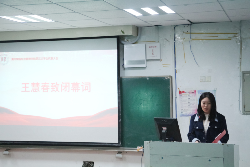 闭幕式 闭幕式上,王慧春致闭幕辞。对本次学代会的顺利召开表示祝贺,并号召我院青年我校全体青年学生继续高举习近平新时代中国特色社会主义思想伟大旗帜,坚定理想信念、勇担责任使命,努力成长为有理想、敢担当、能吃苦、肯奋斗的新时代好青年。最后,大会在青春激昂的团歌中圆满闭幕。